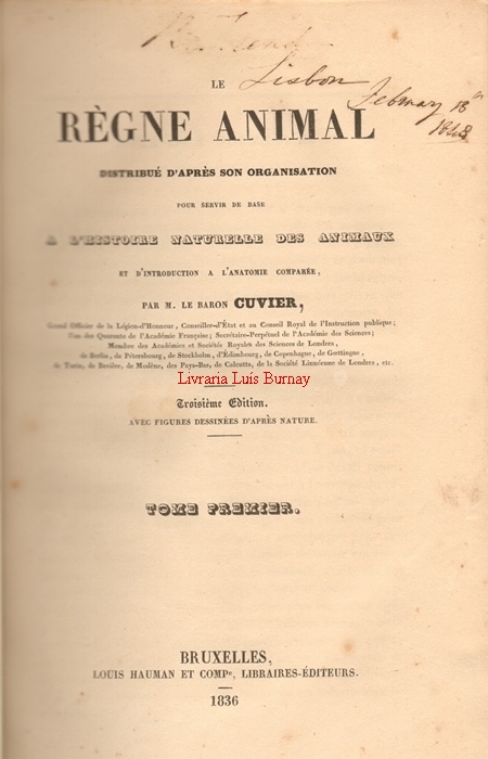 Uma das obras clássicas da taxonomia zoológica, fruto dos estudos de anatomia comparativa realizados por este famoso cientista. Esta edição vem adornada com 24 gravuras abertas em aço que representam espécimes característicos dos principais crupos zoológicos.