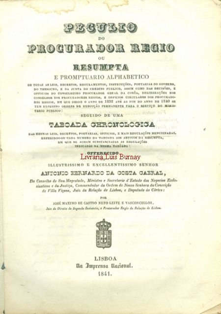 Lisboa: Na Imprensa Nacional, 1841.-X, 311p.; 22cm.-B