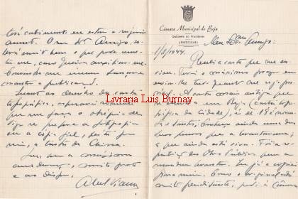 CARTA AUTÓGRAFA ASSINADA. DIRIGIDA AO MAESTRO SAMPAIO RIBEIRO, QUE LHE HAVIA SOLICITADO A CÓPIA DE UM MAPA ANTIGO DE BEJA. DIZ: \"EU JÁ A COPIEI PARA MIM. COMO O ORIGINAL ESTÁ MUITO PERICLITANTE, PEDI Á CÂMARA PARA PELO EXCELENTE DESENHADOR DELA MANDASSE FAZER UMA REPRODUÇÃO. ESTÁ-SE TRATANDO DISSO.\" DEPOIS DE INFORMAÇÕES SOBRE OUTROS PEDIDOS DE REFERÊNCIAS SOBRE O CONVENTO DA CONCEIÇÃO E PALÁCIO DAS INFANTAS TERMINA PEDINDO AO MAESTRO PARA COLABORAR COM TRABALHOS NO BOLETIM DA CÂMARA MUNICIPAL DE BEJA QUE HAVIA INICIADO HÁ POUCO TEMPO. P.f. preencha e envie o formulário - quando esta obra estiver disponível receberá um e-mail automático a dar-lhe conta |