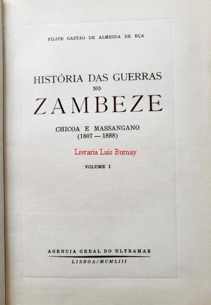 Desenvolvido estudo histórico sobre a colonização da Zambésia, ilustrado com estampas em separado. Este exemplar está valorizado com uma dedicatória do autor para o grande bibliófilo comandante Ernesto de Vilhena.