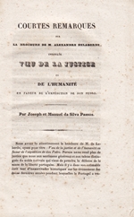 Raro opúsculo liberal publicado em Paris. Na pag. 29 e 30 está uma carta de Alexandre Delaborde aos autores datada de 25 Jul. 1832.