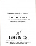 Trata-se de uma colecção de 9 postais com reproduções a cores de alguns quadros de Carlos Crego expostos na exposição da Galeria Matisse em 1992. Tudo solto dentro de envelope próprio